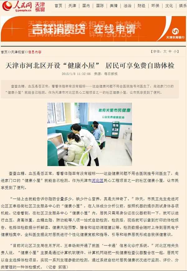 天津市河北區開設"健康小屋"居民可享受免費自助體檢